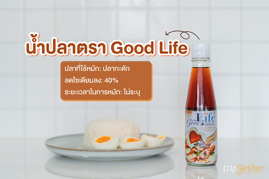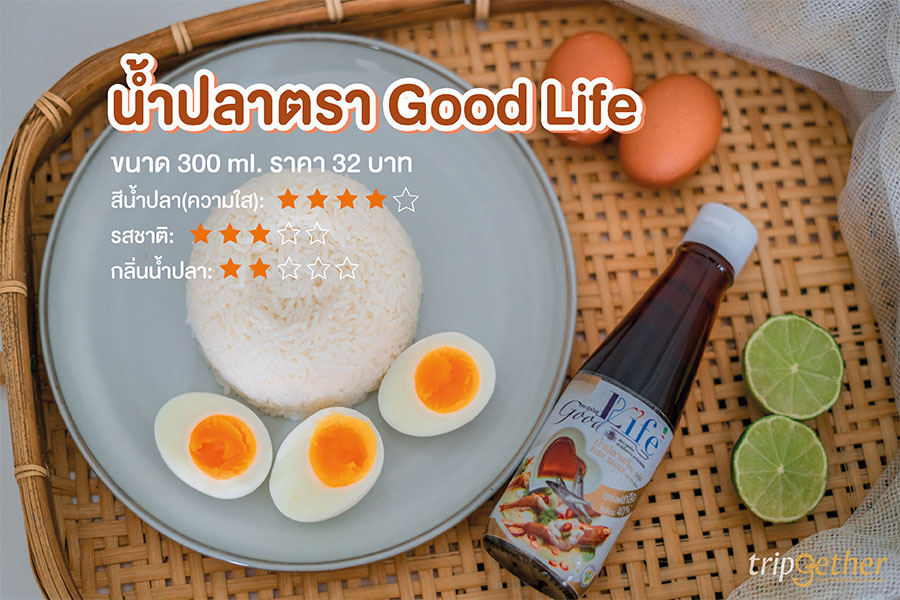 **น้ำปลาตรา Good Life มีกลิ่นและรสชาติที่เบามาก มีความเค็มนิดๆ และไม่ค่อยมีความหอมของน้ำปลาเท่าไหร่เพราะเป็นน้ำปลาที่ลดโซเดียมลงถึง 40%