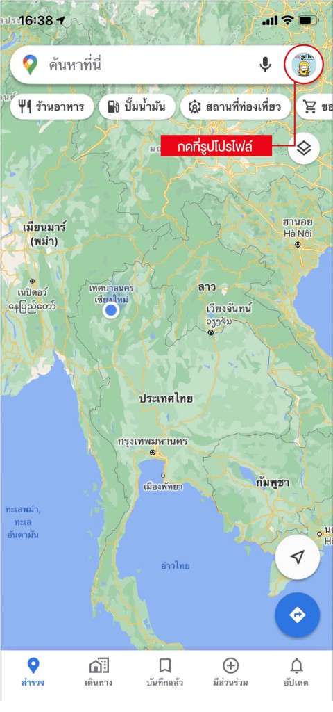 2.เปิดแอปพลิเคชั่นล็อกอินอีเมล์ของเพื่อนๆ ให้เรียบร้อย และเริ่มต้นด้วยการเข้าไปตั้งค่าแอปพลิเคชั่นของ Google Maps โดยกดที่รูปโปรไฟล์มุมขวาบน