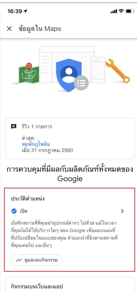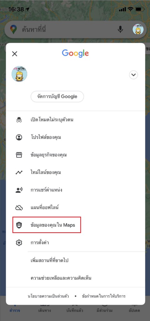 3.และเลือก “ข้อมูลของคุณใน Maps”