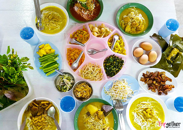 ก่อนไปแหลมพรหมเทพ ขอแวะหาอะไรกินก่อนที่ร้านขนมจีน ร้านชื่อว่า ขนมจีนจี้ลิ่ว บ๊ะจ่างภูเก็ต สาขาสะพานหิน มีน้ำยาให้เลือกเยอะมาก ไม่ว่าจะแกงปู (เมนูขึ้นชื่อ) แกงป่า แกงไก่ ไตปลา น้ำเงี้ยว น้ำยาปลา ที่สำคัญยังให้ผักสด ๆ มาเยอะมาก ดีงามที่สุด