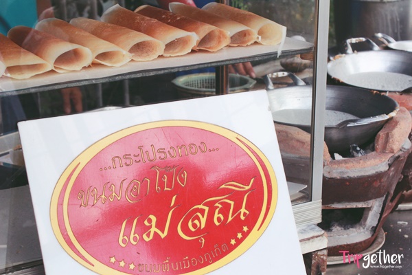 3. ร้านขนมอาโป๊ง แม่สุณี ขนมหน้าตาไม่คุ้นเคย เรียกเราด้วยกลิ่นหอม ๆ จึงเดินไปที่หน้าร้านด้วยความอยากรู้ ขนมอันนี้มีชื่อว่า ขนมอาโป๊ง หรือขนมกระโปรงทอง รสชาติคล้ายถังแตกแต่แป้งบ้างกรอบเหมือนทองม้วน มาภูเก็ตต้องลองไปชิมให้ได้ ราคาไม่แพงด้วยชิ้นละ 3 บาท 7 ชิ้น 20 บาท เท่านั้น ร้านตั้งอยู่ที่ ซอยสุ่นอุทิศ ถนนเยาวราช ร้านเปิดช่วงบ่าย ๆ