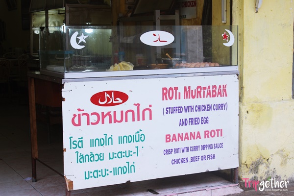 4. ร้านข้าวหมกไก่ (บังดุล) ร้านข้าวหมกไก่เจ้าแรก ๆ ของภูเก็ตที่มีรสชาติถูกใจนักชิมมาเป็นเวลานาน ซึ่งเมื่อเราไปถึงที่ร้านเวลาบ่ายกว่า ๆ ข้าวหมกไก่ก็หมดแล้ว (เสียใจ) เราจึงสั่งโรตีกล้วยมาชิมแทน นอกจากข้าวหมกไก่แล้วที่นี่ก็มีเมนูโรตี และมะตะบะ ทั้งแกงไก่ แกงเนื้อ ใส่กล้วย ให้เลือกรับประทาน ร้านนี้ตั้งอยู่ที่ ถนนถลาง (ร้านอยู่หัวถนนถลาง)