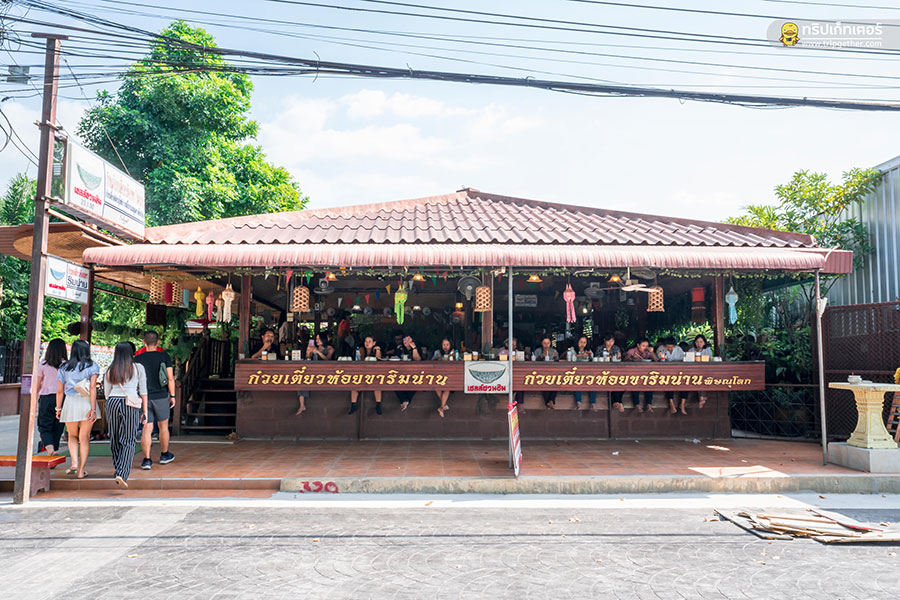 อิ่มบุญอิ่มใจไปแล้ว ตามหาร้านเด็ดกินของอร่อยให้อิ่มพุงกันสักหน่อยดีกว่า และมื้อนี้ก็ต้องยกให้ร้านนี้เลย ก๋วยเตี๋ยวห้อยขาริมน่าน ร้านดังข้างวัดหลวงพ่อใหญ่ โดดเด่นด้วยก๋วยเตี๋ยวต้มยำสูตรสุโขทัยโบราณแท้ๆ ชามละ 35 บาทเท่านั้นเอง ก๋วยเตี๋ยวห้อยขาริมน่าน เปิดให้บริการทุกวัน เวลา 08.00 – 16.00 น. โทร.081 953 6228, 090 894 2394