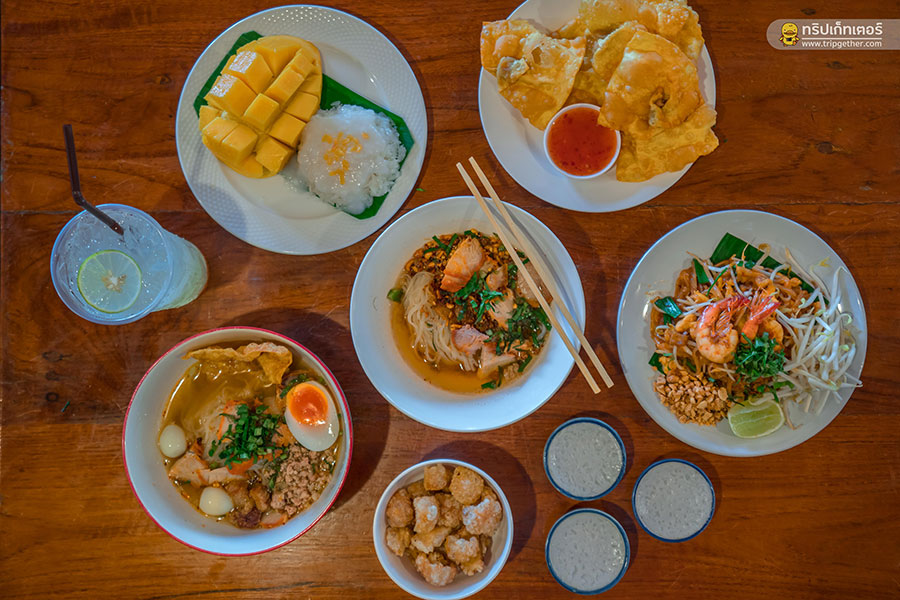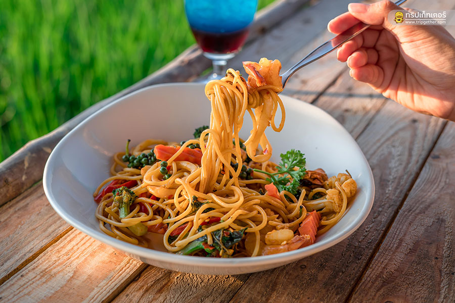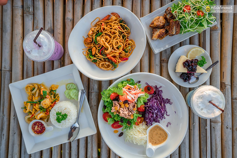 อิ่มอร่อยไปกับเมนูอาหารซิกเนเจอร์ของร้านอย่าง ซี่โครงหมูทอดกระเทียม สลัดปูอัดทูน่า สปาเก็ตตี้ขี้เมาทะเล ข้าวราดทะเลผัดผงกระหรี่ ชานมอัญชัน และชานมเผือก ที่รับรองว่าอิ่มไปถึงอีกวันแน่ๆ