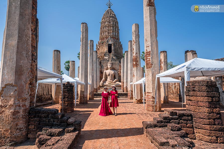พอแดดร่มลมตกเราก็ขอย้ายที่ปักหมุดไปหามุมโพสต์ถ่ายรูปกันต่อที่ อุทยานประวัติศาสตร์ศรีสัชนาลัย มนต์เสน่ห์มรดกโลก ที่นอกจากได้ซึมซับบรรยากาศและความรู้ดีๆ ภายในพื้นที่อุทยานฯ ยังร่มรื่นไปด้วยซุ้มอุโมงค์ต้นไม้ที่กลายเป็นมุมเช็คอินยอดฮิต และยังมีสถาปัตยกรรมเก่าแก่ที่บอกถึงความเจริญรุ่งเรืองในอดีตของสุโขทัย