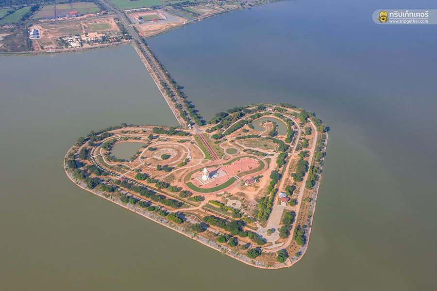 กินก๋วยเตี๋ยวกันอิ่มๆ มาหาที่เดินย่อยและไหว้พระกันต่อที่ ทุ่งทะเลหลวง หรือ เกาะรูปหัวใจ สถานที่ท่องเที่ยวและพักผ่อนกลางทะเลสาบ ที่ถูกเนรมิตขึ้นมาได้อย่างงดงาม ซึ่งเกิดจากแนวคิดโครงการแก้มลิงตามแนวพระราชดำริของในหลวงรัชกาลที่ 9 นอกจากชมความงดงามของเกาะรูปหัวใจแล้ว ที่นี่ยังเป็นที่ประดิษฐานพระพุทธรัตนสิริสุโขทัย ให้เราได้ขอพรให้อุดมสมบูรณ์พูนผลทำอะไรก็สำเร็จ