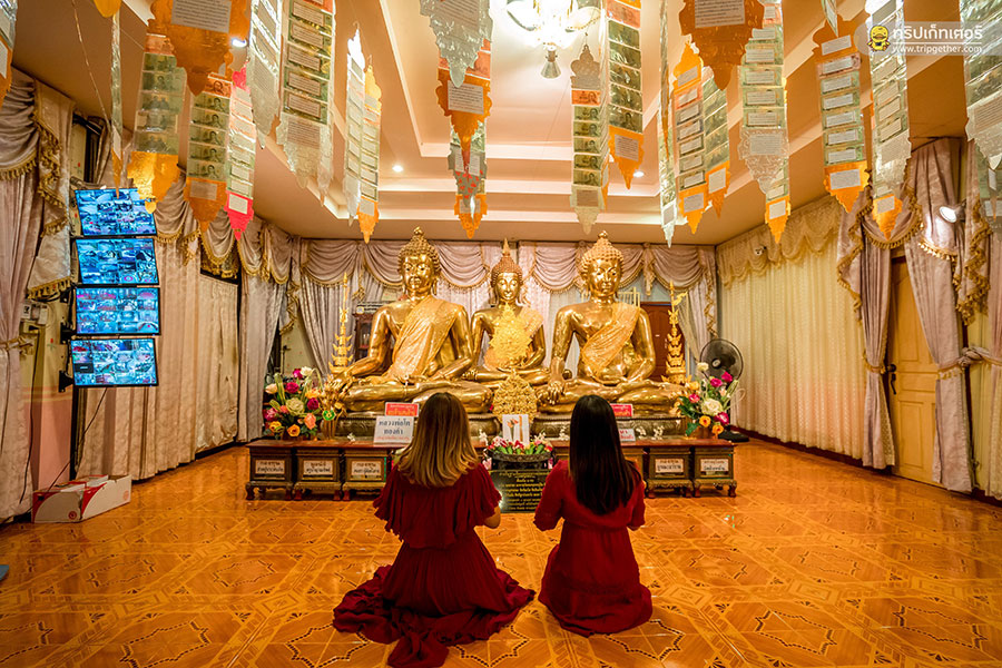 และต้องไม่พลาด! ขอพรหลวงพ่อทองคำ พระพุทธรูปศักดิ์สิทธิ์ปางมารวิชัย หล่อด้วยทองคำบริสุทธิ์หนักถึง 9 กิโลกรัม ที่หลายๆ คนมักจะมาขอพรในเรื่องของความสำเร็จ และยังมีองค์หลวงพ่อทันใจ ที่ให้ขอพร ขอโชคลาภ ความสำเร็จกันแบบทันใจสมชื่อ