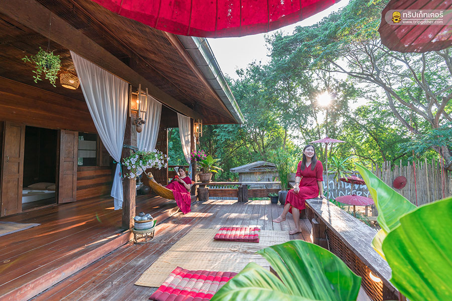 โฮมสเตย์ของที่นี่จะมีเอกลักษณ์ด้วยบ้านไม้เรือนไทยสุดคลาสสิค และอีกหนึ่งความน่ารักที่สัมผัสได้ตั้งแต่มาถึงคือ ชาวบ้านที่รอต้อนรับด้วยรอยยิ้มและความเป็นกันเอง