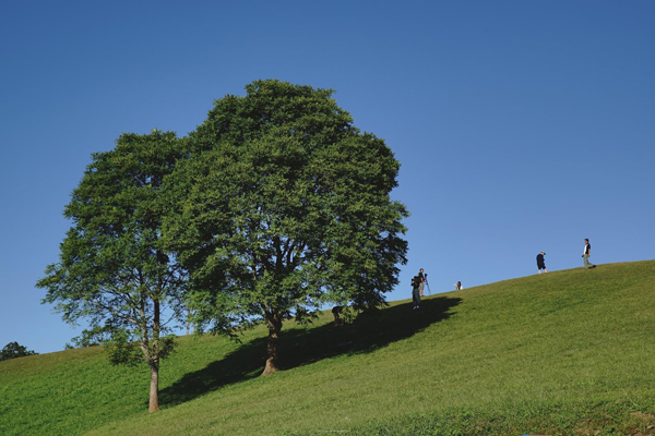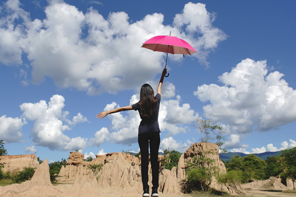 ฟ้าสวยแต่แดดก็ร้อนเอาเรื่องเหมือนกัน เราถอดเสื้อกันหนาวเมื่อเช้าออกแทบไม่ทัน ที่นี่มีร่มบริการให้นักท่องเที่ยวด้วย สามารถเดินไปหยิบได้ ตรงจุดจอดรถ แถวๆที่มีเจ้าหน้าที่นั่งอยู่