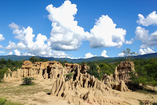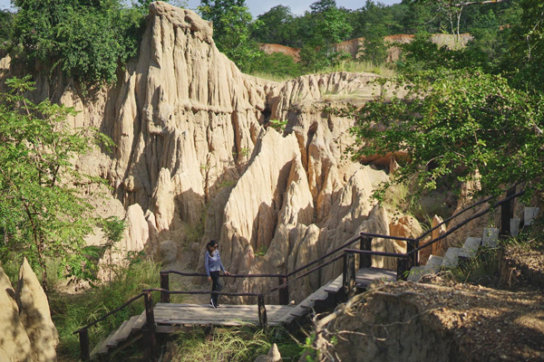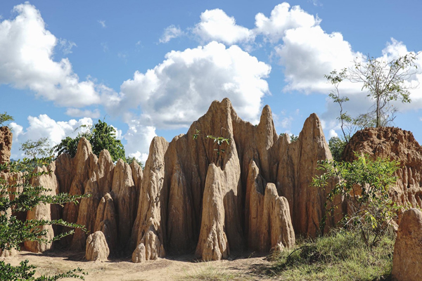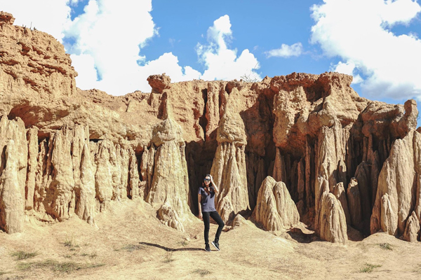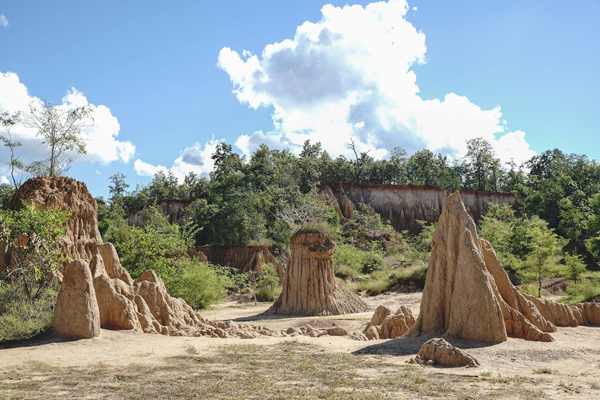 ถึงแล้วเสาดินนาน้อย มีลักษณะเหมือนแท่งดินผสมหินลูกรังปนสีส้มแดง รูปทรงต่างๆเป็นแท่งแหลม แท่งกลม แปลกตา