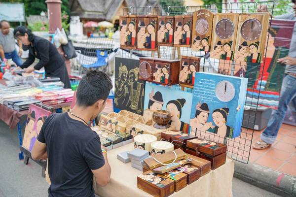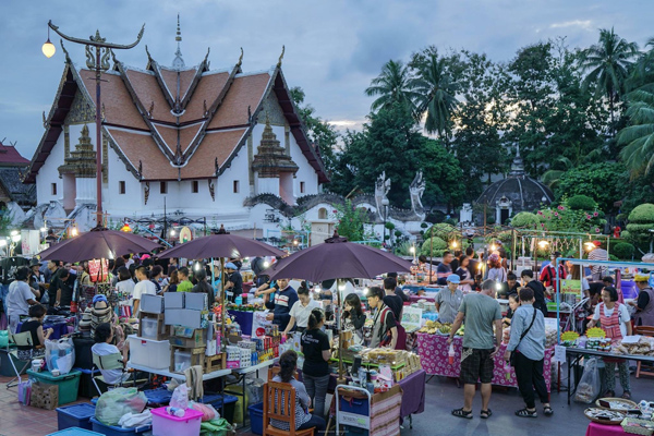 กลับมาที่ลานขันโตกในเมือง ตรงหน้าวัดภูมินทร์กันบ้าง ที่นี่เค้าจะมี ถนนคนเดินทุก เสาร์-อาทิตย์ มีอาหารและสินค้ามาจำหน่ายมากมายหลายชนิด สามารถซื้อแล้วนำมานั่งทานตรงลานขันโตกที่เค้าได้จัดเตรียมไว้ให้ได้เลย