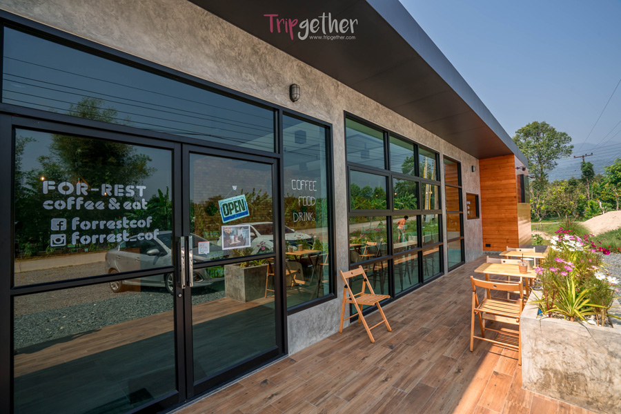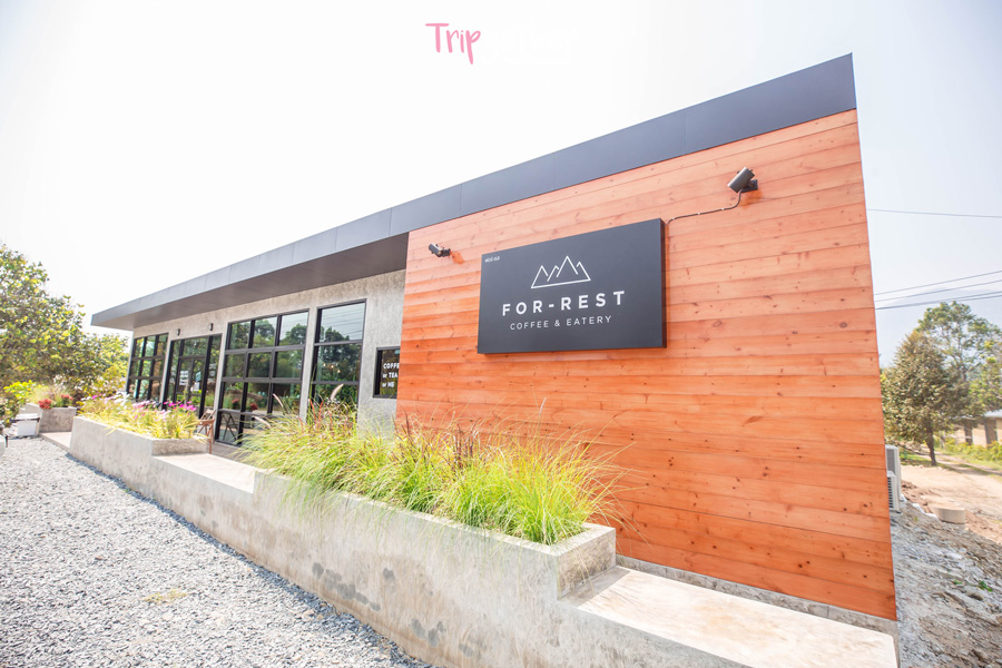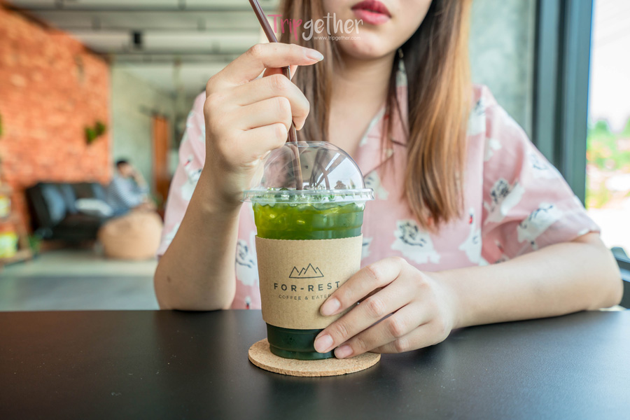 เมื่อขับรถออกจากที่พักมาไม่ไกลเราก็ได้เจอกับร้านคาเฟ่ชิคๆ สไตล์โมเดิร์น แสนสะดุดตาจนต้องขอแวะหาอะไรดื่มกันที่ For-Rest Coffee & Eatery มีให้บริการทั้งเครื่องดื่ม เบเกอรี่ และอาหาร