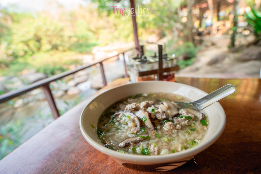 เริ่มต้นวันใหม่กับบรรยากาศเย็นสบายในตอนเช้าจนแทบไม่อยากลุกออกจากเตียงแต่กลิ่นหอมของข้าวต้มหมูเห็ดหอมที่ทางโฮมสเตย์นำมาเสิร์ฟทำให้ต้องลุกขึ้นมาทานพร้อมกับบรรยากาศแสนเย็นสบาย ริมลำธาร ถือได้ว่าเป็นการเริ่มต้นวันใหม่ที่แสนจะสุขใจ พร้อมแล้วที่จะออกเดินทาง