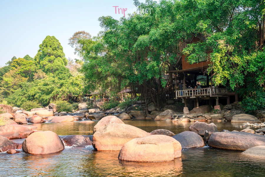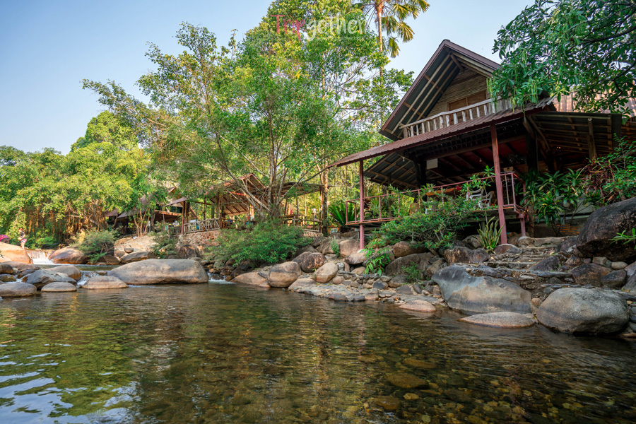 โฮมสเตย์บ้านสวนริมน้ำ จันทบุรี เป็นโฮมสเตย์ริมน้ำ บรรยากาศสบายๆ ใกล้ชิดธรรมชาติ แค่ขับรถเข้ามาภายในบริเวณที่พักก็จะได้ยินเสียงน้ำไหลเบาๆ จากลำธารที่อยู่ติดกับตัวบ้านพัก หากยังไม่เหนื่อยเกินไป ก็มาเล่นน้ำ เก็บภาพสวยๆ ในบรรยากาศสบายๆ ริมลำธาร ซึ่งความดีงามของที่นี่คือมีน้ำไหลผ่านลำธารตลอดไม่เคยแห้ง ทำให้ได้บรรยากาศที่เย็นสบายตลอดทั้งปี ไม่ว่าจะมาช่วงไหนก็ฟิน
