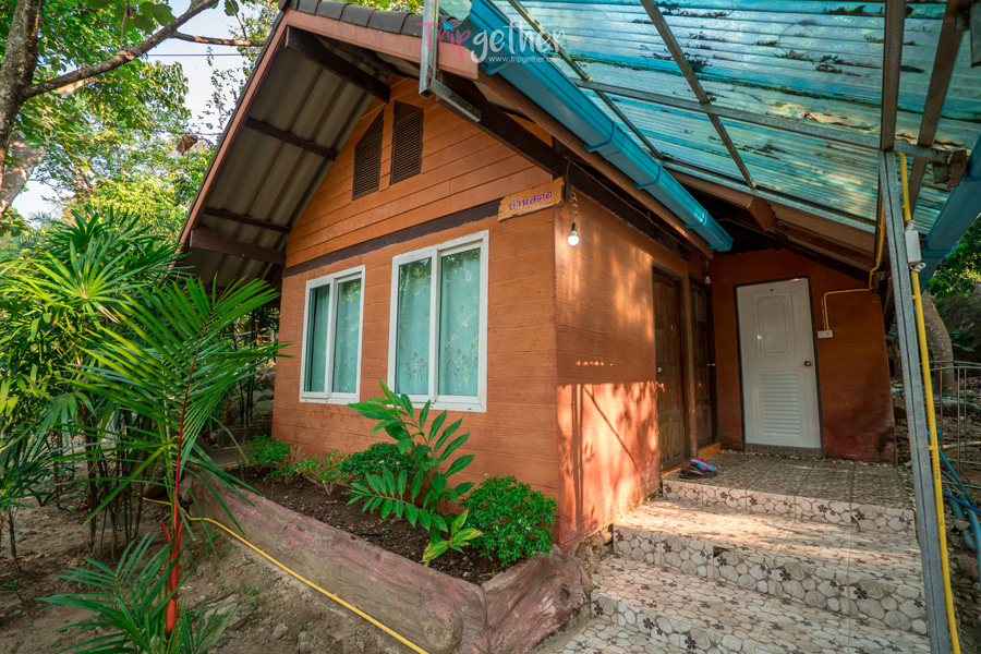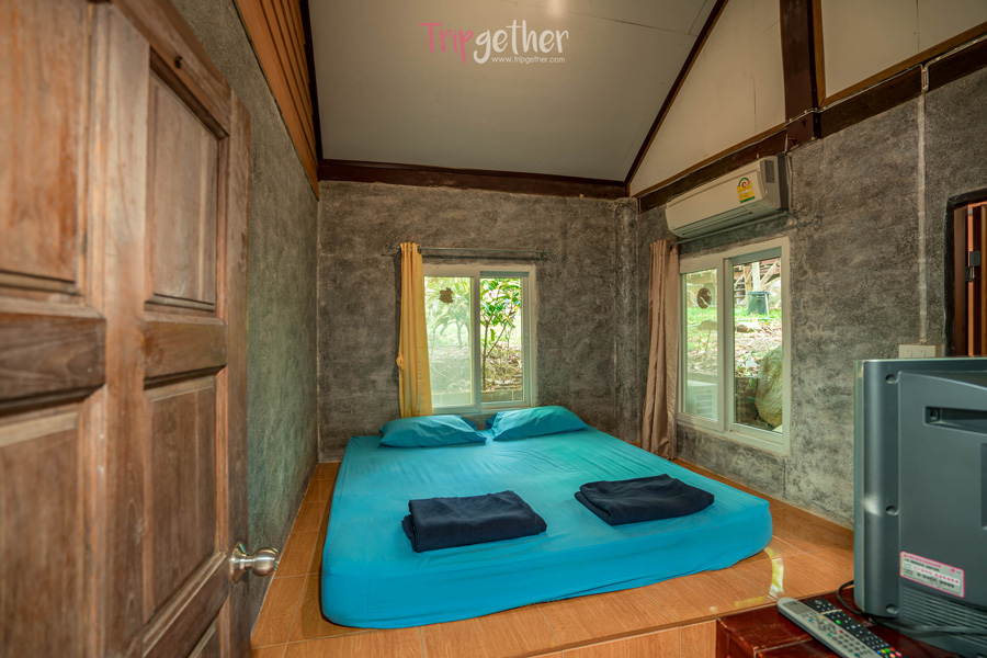 เช็คอิน เก็บของให้เรียบร้อย ก็ได้เวลาสำรวจที่พักกัน ซึ่งโฮมสเตย์บ้านสวนริมน้ำเป็นที่พักสไตล์บ้านๆ อย่างเป็นกันเอง แต่พร้อมด้วยสิ่งอำนวยความสะดวกครบครัน ราคาท่านละ 800 รวมอาหาร 2 มื้อ โดยมื้อเย็นจะเป็นบุฟเฟต์อาหารไทยพื้นบ้านเช่น น้ำพริกปลาทู แกงหมูชะมวง ต้มยำไก่กระวาน ได้ลองแล้วต้องติดใจในรสชาติแบบพื้นบ้านแท้ๆ