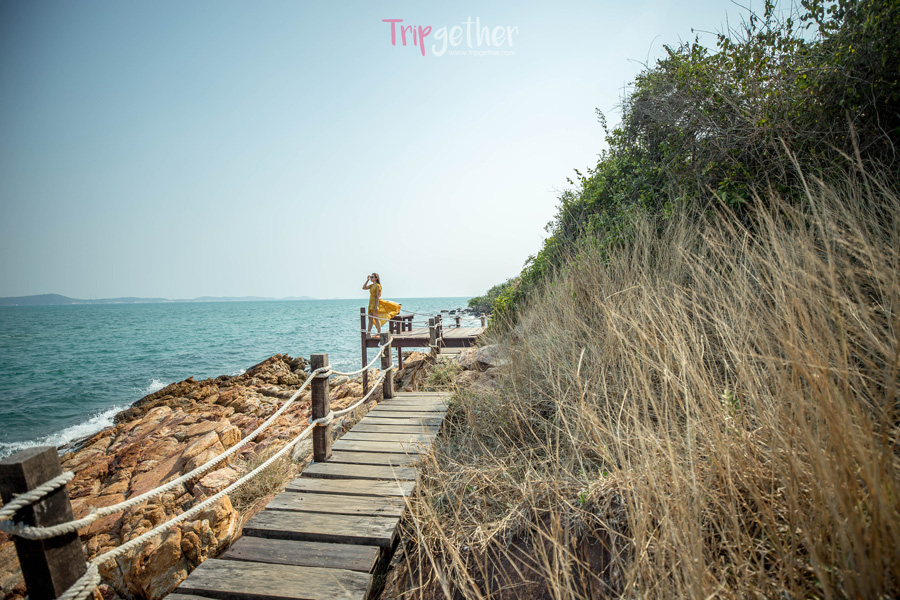 ไฮไลท์ จุดชมวิวทะเลเจดีย์บ้านหัวแหลม อยู่ที่สะพานไม้พาดผ่านโขดหินยื่นยาวออกไปในทะเลระยะทาง 50 เมตรสู่ที่สักการะเจดีย์ โดยระหว่างทางนั้นสามารถหามุมเหมาะๆ ถ่ายรูปสวยๆ หรือจะแค่ดื่มด่ำกับบรรยากาศที่มีทะเลรายล้อมแสนโรแมนติกแต่ฟินได้เหมือนกัน