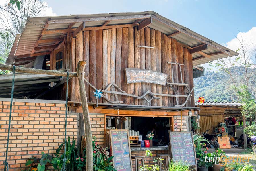 หลังจากที่เรายืนเสพความงามของน้ำตกวชิรธารอยู่ครู่หนึ่งแล้ว สายกาแฟอย่างเราต้องไม่พลาดจิบกาแฟเมืองเหนือยามเช้า เพื่อนเราจึงพาไปต่อที่ ริมธารคอฟฟี่ จะบอกเลยว่าร้านนี้เป็นหนึ่งในจุดเช็คอินในทริป ที่เที่ยว ดอยอินทนนท์ 3 วัน 2 คืน ของเรา ส่วนทำไมต้องมาที่นี่ เพื่อนของเราบอกว่าเดินเข้าไปดูแล้วจะรู้เอง พอเรามาถึงตัวร้านจะเป็นร้านกาแฟเล็กๆ กึ่งอิฐกึ่งไม้ ดูน่ารักอบอุ่นสไตล์บ้านน้อยปลายนา