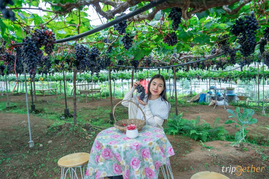 เช้าวันสุดท้ายที่สำหรับทริปดอยอินทนนท์ เราตื่นมารับอากาศที่สดชื่นถึงหน้าที่พัก เรารีบสูดอากาศบริสุทธิ์ให้เต็มปอด แล้วเตรียมตัวไปทำกิจกรรมของที่พักนั่นก็คือ การเดินเก็บองุ่นและสตรอว์เบอร์รีกันสดๆ ไม่รอช้าเราสวมบทเป็นฟาร์ทเมอร์เดินเก็บองุ่นสดๆ เพลินและสนุกมากเลยล่ะ แล้วถึงเวลาที่เราต้องกลับกัน
