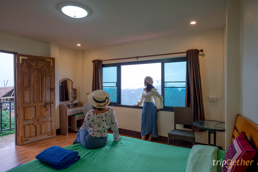 กินข้าวอิ่มแล้ว เราก็เตรียมเก็บกระเป๋าเข้าที่พักในคืนนี้ของเรากันที่ ภูผาฮี้ โฮมสเตย์ ที่พักบรรยากาศสบายๆ ที่มาพร้อมกับห้องพักวิวสวยและมุมถ่ายรูปยอดฮิต