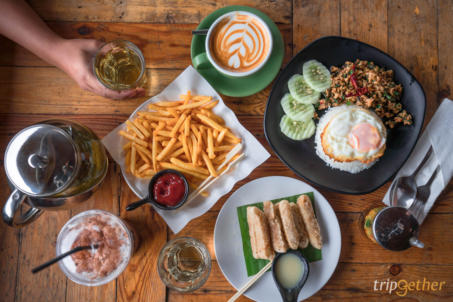 เมนูแนะนำข้าวปุกทอด 60 บาท, ข้าวลาบอาข่า 89 บาท, เฟรนด์ฟราย 60 บาท, ลาเต้ร้อน 60 บาท และม็อคค่า 70 บาท