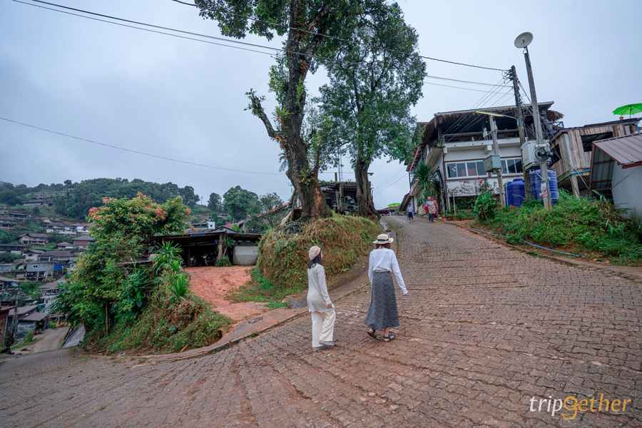 กินข้าวอิ่มๆ ก็ขอเดินย่อยสักหน่อย ซึ่งในหมู่บ้านจะมีมัคคุเทศก์น้อย ค่อยพาเที่ยวด้วย และในทริปนี้เราได้น้องพีท ลูกชายเจ้าของโฮมสเตย์ภูผาฮี้พาเที่ยวกับกลุ่มเพื่อนๆ
