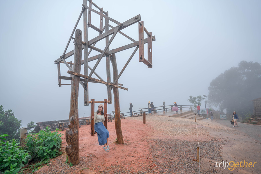 เดินมาเรื่อยๆ ก็จะมีชิงช้าชาวเขา ที่ในทุกปีจะมีพิธีโล้ชิงช้าในหมู่บ้าน ซึ่งจะตรงกับวันปีใหม่ของชาวชาวอาข่านั้นเอง