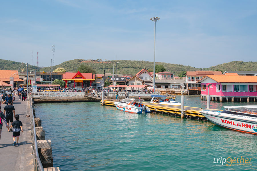 ใช้เวลานั่งประมาณ 45 นาทีก็มาถึงที่ท่าหน้าบ้านเกาะล้านแล้ว แดดแรงสะใจ บรรยากาศเหมาะกับการมาเที่ยวทะเลสุดๆ
