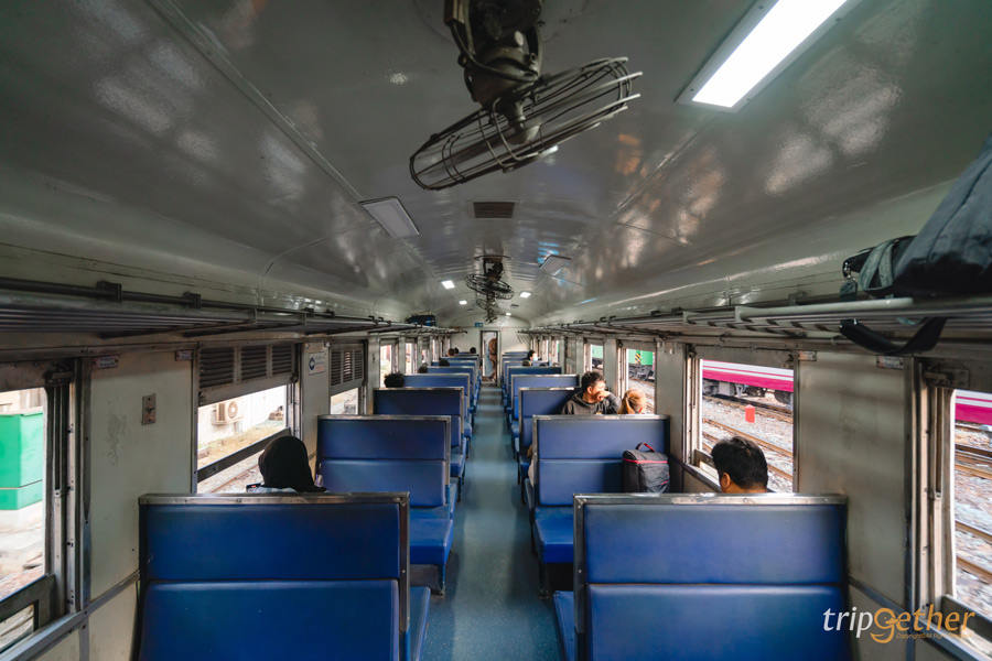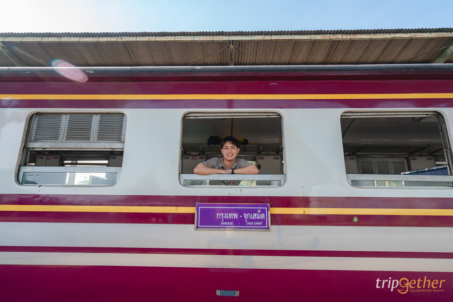 ทริปเกาะล้านครั้งนี้ เราเปิดประสบการณ์ใหม่ด้วยการนั่งรถไฟ ซึ่งเส้นทางรถไฟสายภาคตะวันออกต้องมาเริ่มต้นที่สถานีรถไฟหัวลำโพง และด้วยความที่เราเดินทางในวันธรรมดา รอบรถไฟจะมีแค่วันละรอบเท่านั้นคือเวลา 06.55 น. ราคาคนละ 31 บาท (ถ้าขั้นต่ำไม่ถึง 100 บาทต้องจ่ายเงินสดนะ แต่ถ้ามากกว่านั้นสามารถสแกนจ่ายได้) รถไฟในวันธรรมดาเป็นขบวนรถแบบธรรมดา ชั้น 3 กรุงเทพฯ – จุกเสม็ด