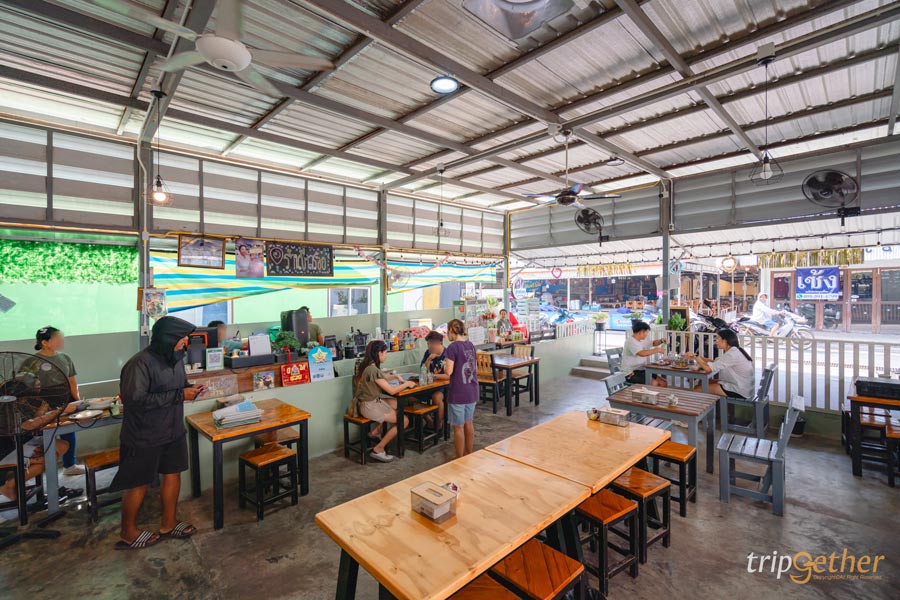 เดินมาถึงด้านในก็จะเจอกับตัวร้านที่มีรูปทรงที่โดดเด่นไม่ซ้ำใคร แบบเพิ่งรีโนเวทใหม่แบบสดๆ ร้อนๆ คือการสร้างตัวร้านให้เป็นเรือลำใหญ่ ทั่วทั้งร้านใช้วัสดุจากธรรมชาติทั้งหมด สื่อถึงความเป็นชายหาดและท้องทะเลได้แบบเต็มๆ แถมยังอยู่ติดกับหาดสังวลาย์อีกด้วย เรียกได้ว่าไม่ว่าจะนั่งมุมไหนของร้านก็ได้เห็นวิวสวยๆ ทุกมุมเลย