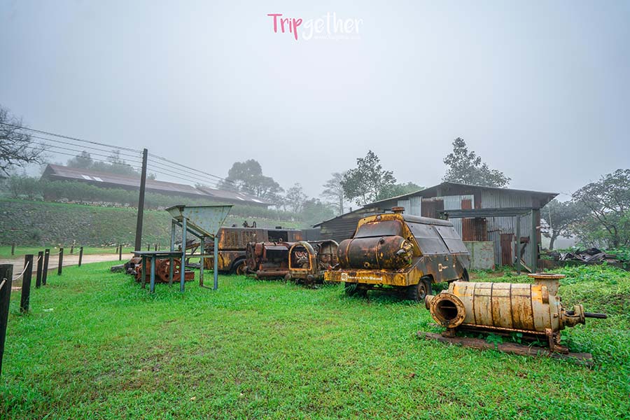 รอบบ้านประดับประดาด้วยเครื่องจักรทำเหมืองที่ผ่านการใช้งานจนหมดวาระ แต่ยังดูเหมือนมีชีวิตอยู่ตลอด ถัดเข้ามาจะมีบ่อน้ำแร่ไหลผ่าน มีปลาคาร์ปแหวกว่าย ให้ความรู้สึกเหมือนอยู่ที่ญี่ปุ่นสุดๆ ฟินมาก มีมุมชิคให้เก็บภาพกันมากมาย ช่วงหมอกแบบนี้ก็มีเสน่ห์ไปอีกแบบ