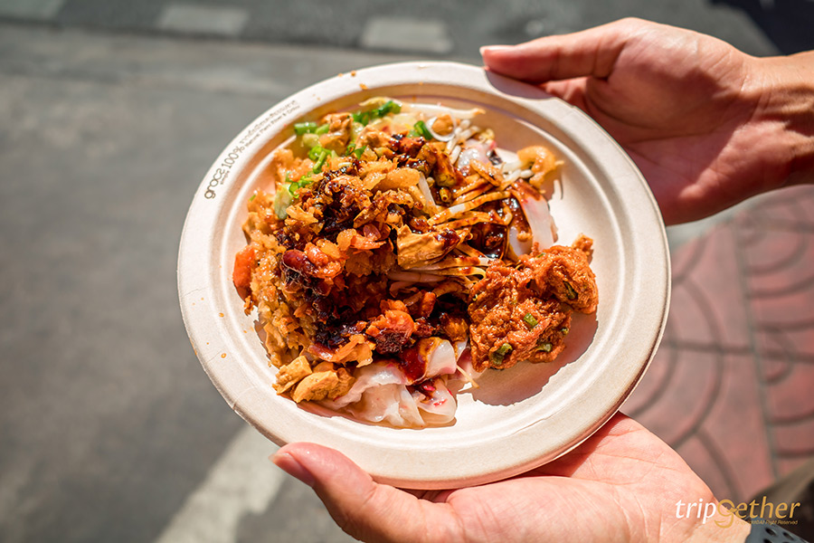 มาทั้งทีจัดไปเลยก๋วยเตี๋ยวหลอดร้อนๆ มีทั้งเส้นก๋วยเตี๋ยวนุ่มหนึบ จัดเต็มเครื่องอย่างไชโป้ว เต้าหู้ กุ้งแห้ง ถั่วงอก กระเทียม กากหมูเจียว ต้นหอม ราดด้วยน้ำซอสรสเด็ด เสิร์ฟมาพร้อมกับทอดมันร้อนๆ บอกเลยว่าอร่อยมาก สมคำร่ำลือ! ชุดละ 35 บาทเท่านั้นเอง
