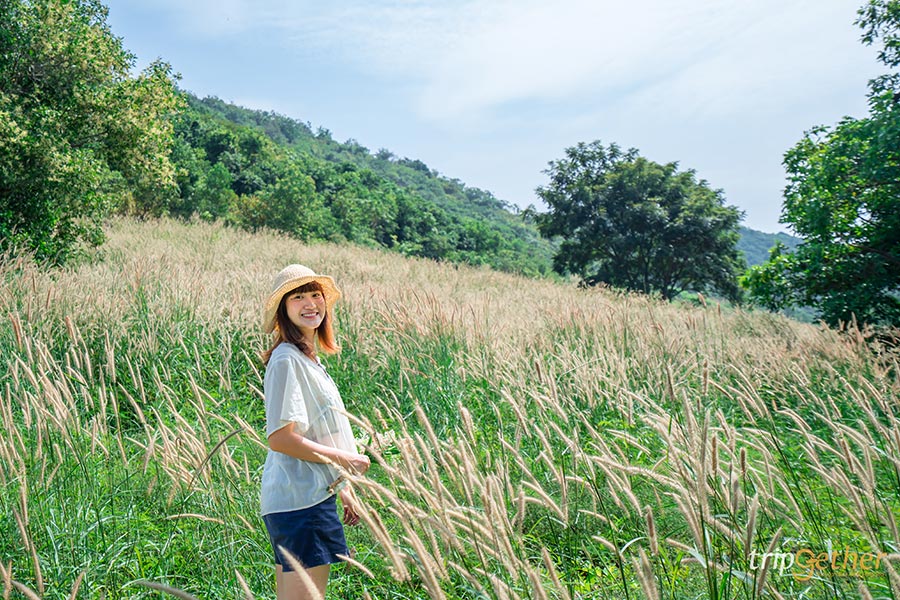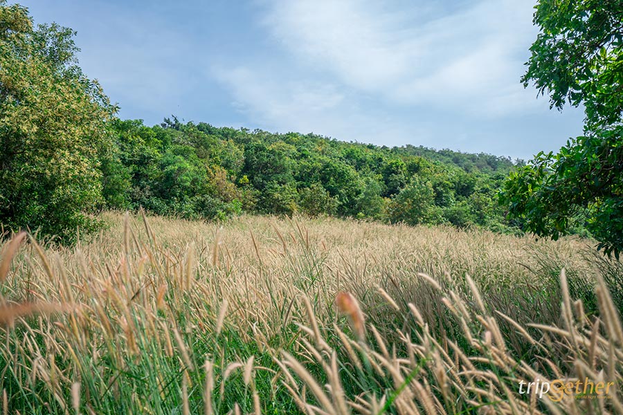 กินอิ่มแล้วก่อนกลับไปเช็คเอาท์ก็ต้องเที่ยวกันให้คุ้ม เพราะที่ต่อไปที่เราจะแวะไปเช็คอินก็คือหาดนวล แต่ระหว่างทางเราเจอกับทุ่งหญ้าสวยๆ สายถ่ายรูปอย่างเราจะพลาดได้ไง ขอจอดรถแล้วลงไปโพสท่าถ่ายรูปกันนิดนึง