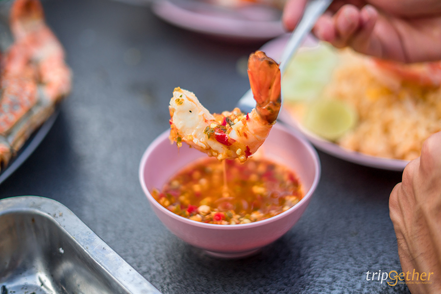 กุ้งเผากินกับน้ำจิ้มซีฟู้ดรสแซ่บอร่อยไม่ไหว
