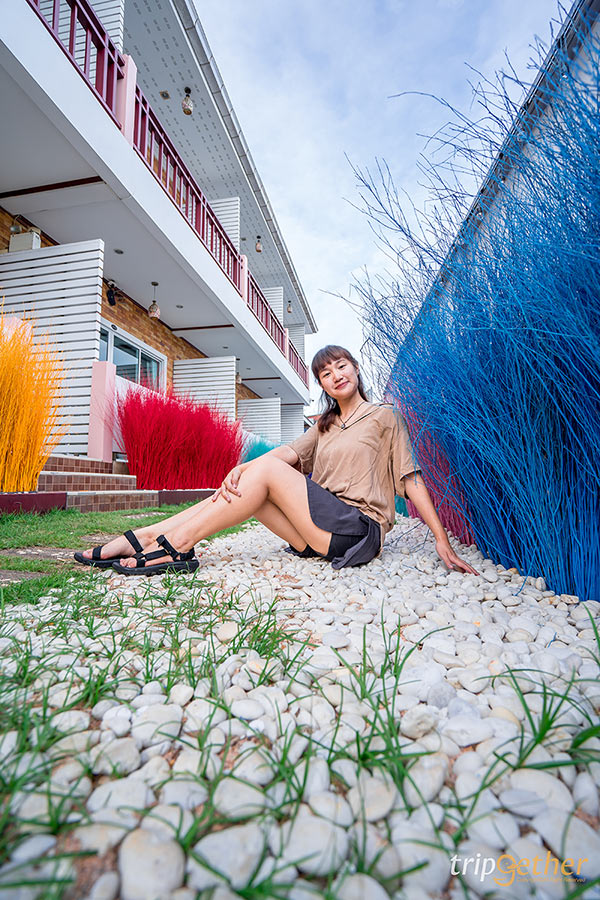 ดำน้ำและเล่นน้ำกันเต็มที่แล้วก็ถึงเวลากลับที่พักไปอาบน้ำเปลี่ยนเสื้อผ้าไปซื้ออาหารทะเลสดๆ มาปิ้งย่างเป็นมื้อเย็นกัน ซึ่งทางที่พักมีพื้นที่สำหรับปิ้งย่างจัดเตรียมไว้ให้ด้วย แต่ก่อนไปตลาดเราก็เดินเล่นถ่ายรูปกับมุมสวยๆ กันหน่อย