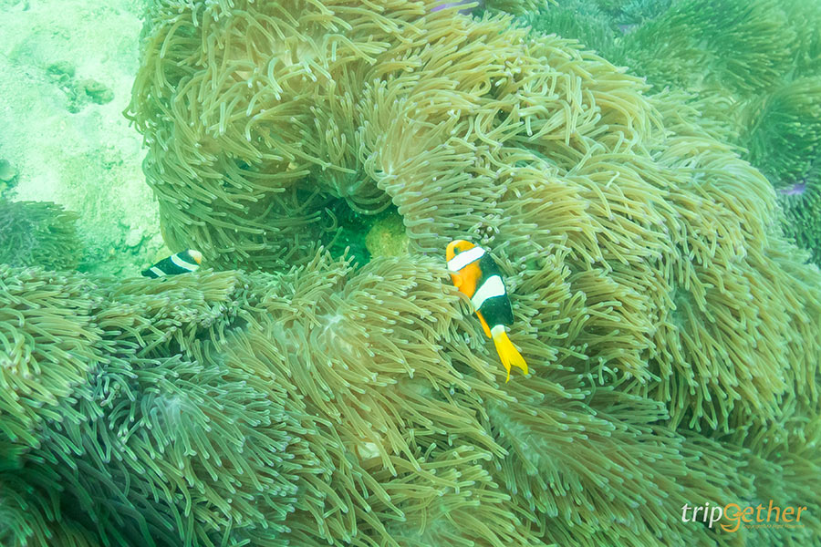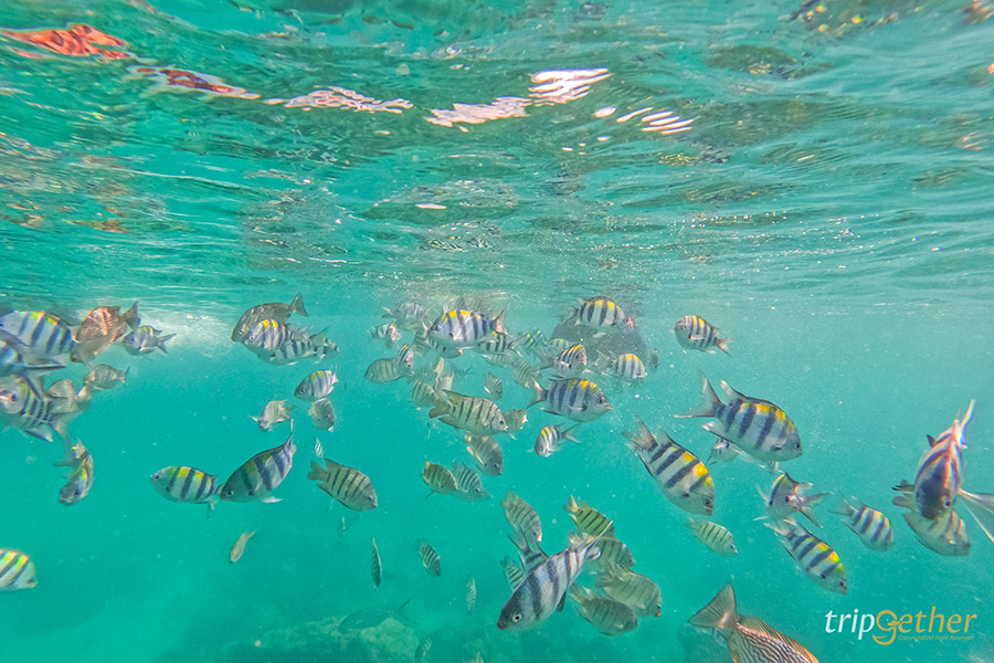 หลังเล่นเครื่องเล่นแล้วเราก็ไปดำน้ำดูปลาน่ารักๆ กัน แถมยังมีบริการถ่ายรูปใต้น้ำให้เราด้วยนะ คนที่ถ่ายรูปให้เราก็คือพี่ๆ ที่พาเราไปดำน้ำนั้นเอง อยากตะโกนดังๆ ว่าถ่ายฟรี!! ทริปนี้คุ้มสุดๆ เลย