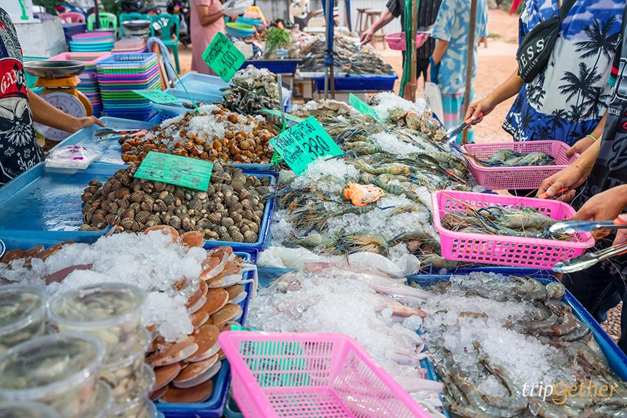 มาถึงแล้วตลาดที่เราจะมาซื้ออาหารทะเลไปปิ้งย่างกันเย็นนี้ อยากบอกว่ามีแต่ของสดๆ อยากกินอะไรเลือกซื้อได้ตามใจชอบเลย