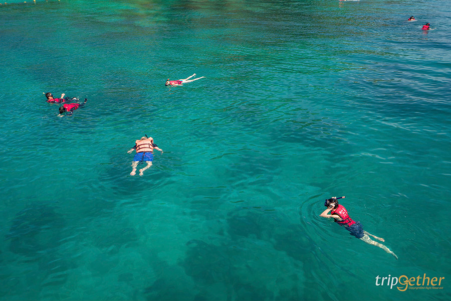 น้ำใสมากและปลาก็เยอะมากด้วย ตื่นเต้นกันสุดๆ แถมได้ถ่ายรูปใต้น้ำด้วยนะ พี่ๆ ทีมงานที่ดูแลเราเป็นคนถ่ายให้สุดยอดไปเลย