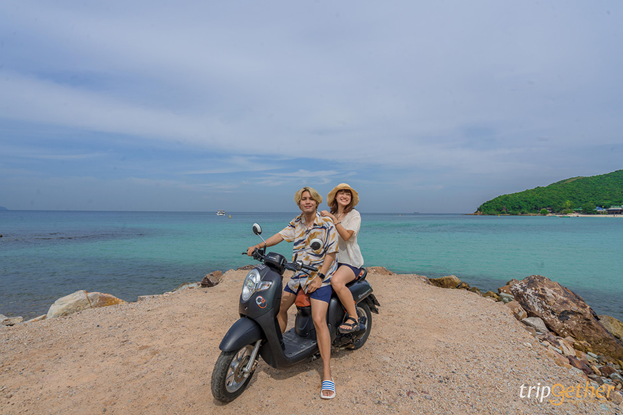 หลังจากเราเช็คอินเก็บกระเป๋ากันแล้วเราก็ออกไปกินมื้อกลางวันอร่อยๆ กัน เราเดินทางด้วยขับมอเตอร์ไซค์ที่มีอยู่ในแพ็คเกจเกาะล้าน 2 วัน 1 คืนที่เราซื้อไว้ไม่ต้องไปหาเช่าให้ยุ่งยากบริการดีไม่ไหว สบายสุดๆ