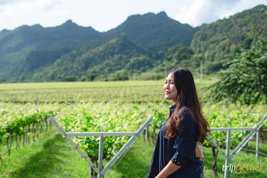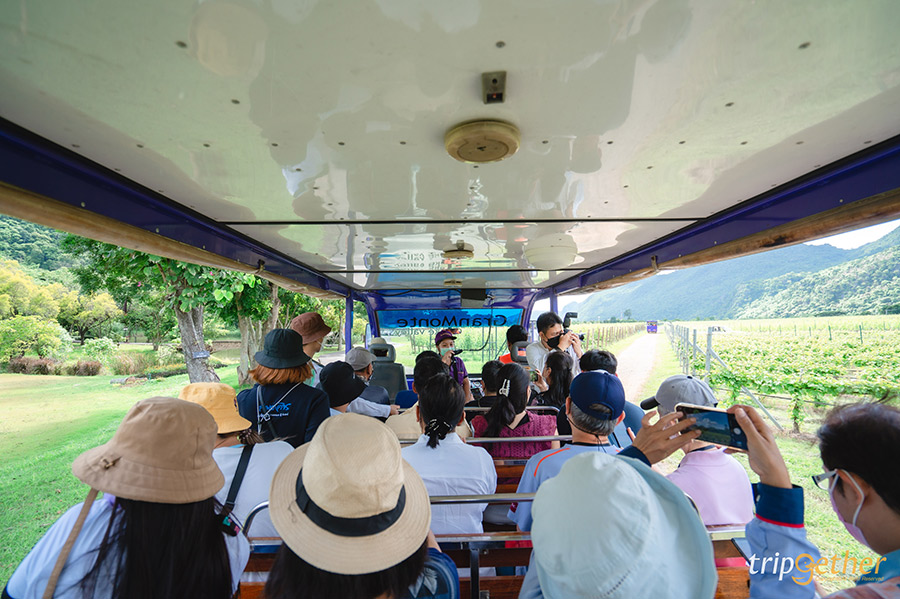 หลังจากสัมผัสรสชาติไวน์คุณภาพกันไปแล้ว ทางไร่ก็จะนำผู้เข้าร่วมทริปนั่งรถรางทัวร์บริเวณพื้นที่ของไร่องุ่น ให้ได้รับลมกันสบายๆ สุดเพลิดเพลิน พร้อมกับสูดอากาศบริสุทธิ์กันอย่างไม่รีบร้อน จากบริเวณไร่สามารถมองเห็นภาพความสวยงามของแนวเถาองุ่นโดยมีภูเขาสีเขียวขจีตั้งเป็นฉากหลัง ซึ่งตัดกับแนวของท้องฟ้าได้เป็นอย่างดี