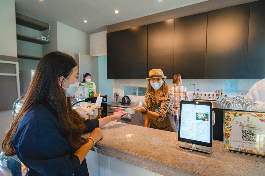 ขอบอกว่านอกจากกิจกรรมและของว่างจากผลผลิตออร์แกนิคแล้ว ทางฟาร์มยังมีผลิตภัณฑ์แปรรูปจำหน่ายให้กลับเอาไปเป็นของฝากอีกเพียบ ที่สำคัญที่นี่ยังสามารถจ่ายเงินด้วยบัตรเครดิตท่องเที่ยว ธนาคารกรุงเทพได้ด้วยนะ