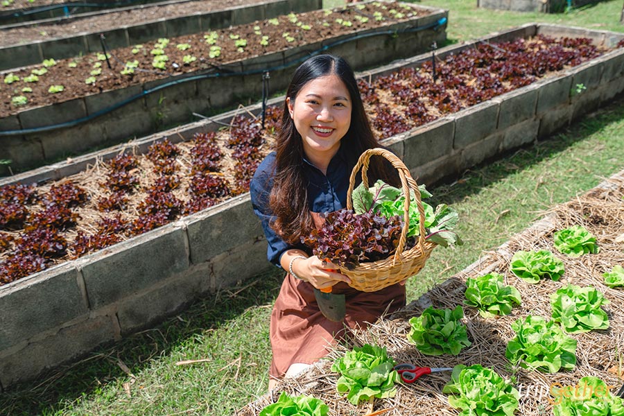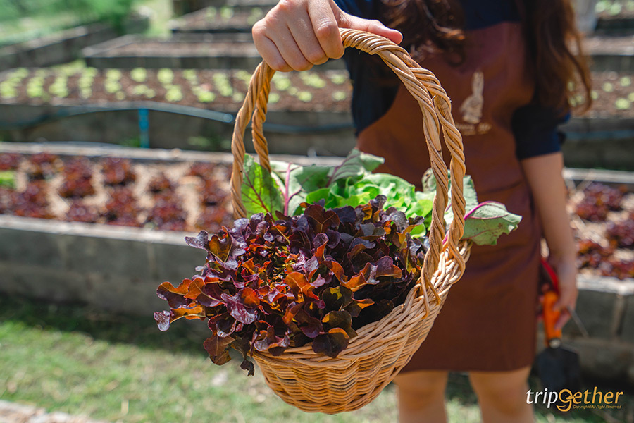 ได้ทั้งผักที่ปลูกและเก็บเองกับมือ แถมยังได้ถุงผ้าสกรีนลายน่ารักๆ จากฟาร์มติดไม้ติดมือกลับบ้านด้วยนะ