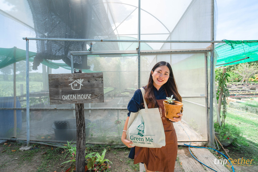 เช้าวันที่สอง หลังจากที่พักผ่อนและรับประทานอาหารเช้าจากทางที่พักแล้ว เราไปเช็คอินกันต่อที่ Green me organic farm ฟาร์มเล็กๆ ที่อบอวลไปด้วยรอยยิ้มและความอบอุ่นทั่วทั้งพื้นที่ 27 ไร่ สถานที่ที่นอกจากจะเป็นแหล่งเรียนรู้วิถีเกษตรอินทรีย์แล้ว ยังเป็นสถานที่ที่มีทั้งความฝัน ความคิดสร้างสรรค์ และเรื่องราวมากมายพร้อมจะส่งต่อให้กับผู้ที่มาเยือน