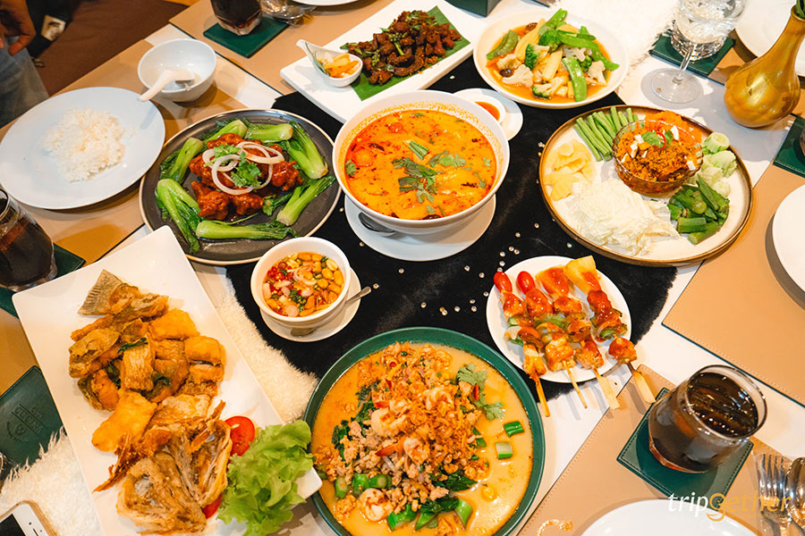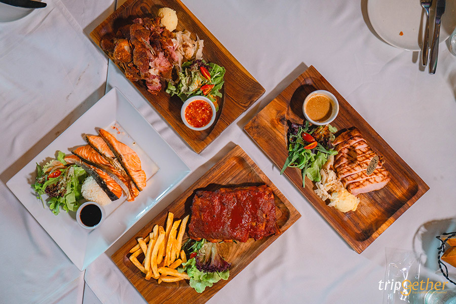 เมนูอาหารรสชาติเยี่ยมที่รังสรรค์มาอย่างน่าประทับใจที่นำมาเสิร์ฟในค่ำคืนนี้มีทั้งปีกไก่เหล้าแดง ยำคะน้าฮ่องกงกุ้งสด บาร์บีคิวที่มีให้เลือกทั้งหมู ไก่ และเนื้อ น้ำพริกลงเรือที่เสิร์ฟมาพร้อมกับผักสด ผัดผักรวมมิตร เนื้อปลากะพงทอดน้ำปลา ต้มยำทะเล และปิดท้ายด้วยผลไม้ตามฤดูกาล