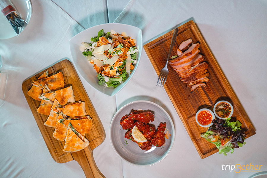 นานาเมนูอาหารสไตล์ต่างประเทศที่นำเสิร์ฟ ต่างก็เรียกน้ำย่อยและเต็มไปด้วยความพิถีพิถันผ่านรสชาติในแต่ละคำ โดยมีทั้งขาหมูสไตล์เยอรมัน เนื้อหมูสันนอกรมควันเสิร์ฟคู่กับมันบด กะหล่ำปลีดอง สลัด และซอสเห็ดแชมปิญอง แซลมอนย่างซิสเทอริยากิ เสิร์ฟคู่กับสลัดและข้าวผัดเนยกระเทียม ซี่โครงหมูอบซอสบาร์บีคิว