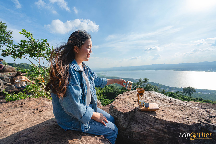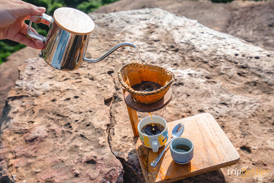 เท่านั้นยังไม่พอยังมีกิจกรรมพร้อมเอาใจสายกาแฟ นั่นก็คือการนั่งดริปกาแฟชิลๆ พร้อมกับชมวิวไปพร้อมๆ กัน ราวกับว่าใช้เวลาอยู่ในคาเฟ่ของธรรมชาติ มีก้อนหินเป็นโต๊ะเก้าอี้ มีสายลมธรรมชาติเป็นเครื่องปรับอากาศ กลิ่นของธรรมชาติและความเขียวขจีของผืนป่าเป็นเหล่าของตกแต่ง ความสบายจากธรรมชาติแบบนี้หาที่ไหนไม่ได้อีกแล้ว