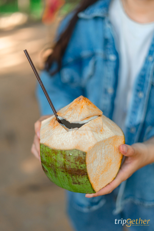 หลังจากที่เราสัมผัสรสชาติความเข้มข้นของกาแฟและดื่มด่ำความงามของภาพทิวทัศน์กันแล้ว ก็ยังมีน้ำมะพร้าวให้ดื่มเพิ่มความสดชื่นกันอีกด้วย
