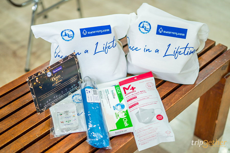 การเดินทางของทริปเขาใหญ่ 2 วัน 1 คืน เริ่มต้นขึ้นที่การท่องเที่ยวแห่งประเทศไทย สำนักงานใหญ่ ซึ่งเมื่อผู้เข้าร่วมทริปเดินทางมาถึงก็จะได้รับชุด Travel Kit เป็นกระเป๋าผ้าสีขาวที่สกรีนคำว่า “Once in a Lifetime” ที่ภายในกระเป๋ามีอุปกรณ์ที่จำเป็นต่อการเดินทางท่องเที่ยว ทั้งร่มขนาดพกพา หน้ากากอนามัย สเปรย์แอลกอฮอล์ และชุดตรวจ ATK และด้วยความที่นัดหมายกันในช่วงเวลาเช้าตรู่ ทางทีมงานก็มีชุดอาหารเช้าบริการให้อีกด้วย เพื่อเตรียมพร้อมสำหรับการท่องเที่ยวและทำกิจกรรมที่กำลังจะมาถึงตลอดทั้งวัน ถือเป็นความประทับใจแรกและความพิเศษที่มอบให้ผู้เข้าร่วมทริปโดยเฉพาะ