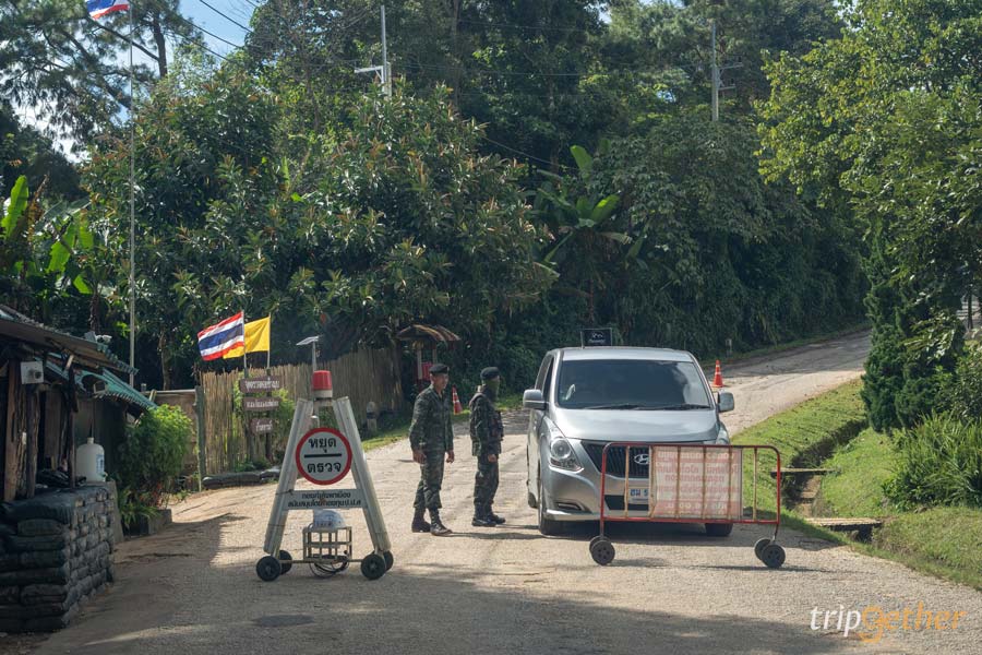 จากดอยช้างมูบเดินต่ออีกไม่ไกลก็ถึงหมู่บ้านผาฮี้แล้ว แต่ก่อนจะผ่านด่านตรงนี้ไปได้ จะมีทหารเข้ามาตรวจและขอถ่ายรูปคู่บัตรประชาชนไว้