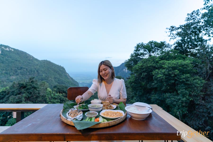 ร้านอาหารที่นี่มีอยู่ 2-3 ร้าน เราเลือกแวะร้านที่ตั้งอยู่ริมเขา