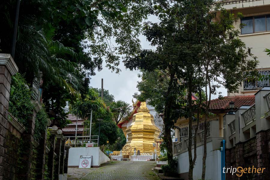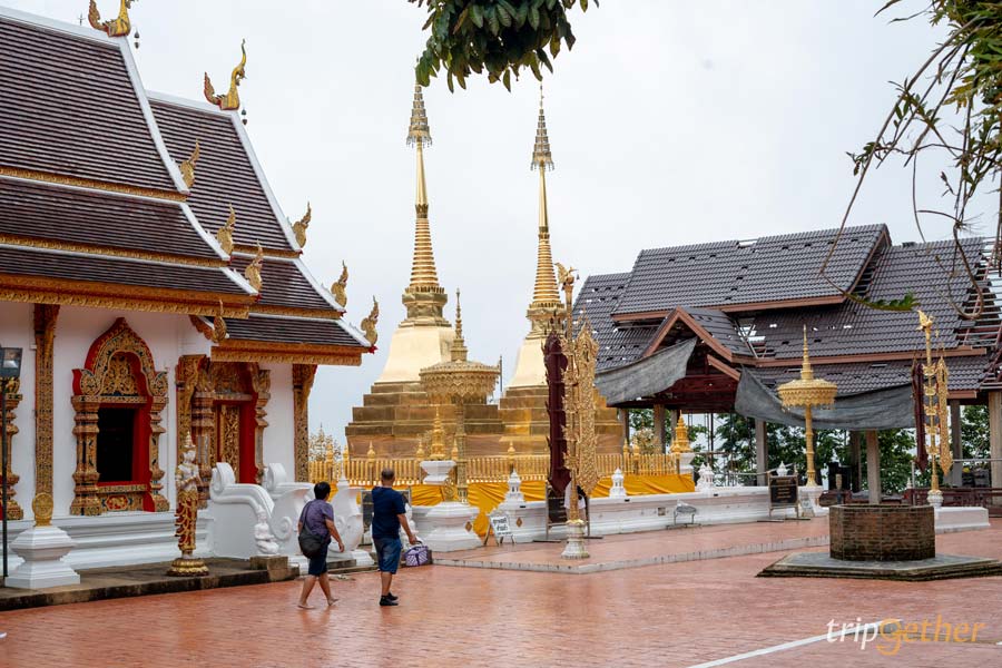 เดินเล่นในหมู่บ้านกันจนเพลินก็ถึงเวลาที่เราต้องเดินทางกันต่อแล้ว ซึ่งก็ยังไม่รู้เลยว่าจะไปไหนดี แต่ระหว่างที่เรายื่นดูวิวที่ร้านภูผาฮี้คอฟฟี่ สังเกตุเห็นวัดหนึ่งบนยอดเขา เมื่อสอบถามพี่เจ้าร้านก็ได้ทราบว่าตรงนั้นคือวัดพระธาตุดอยตุงนั้นเอง เลยว่าจะแวะไปที่นั้นกัน